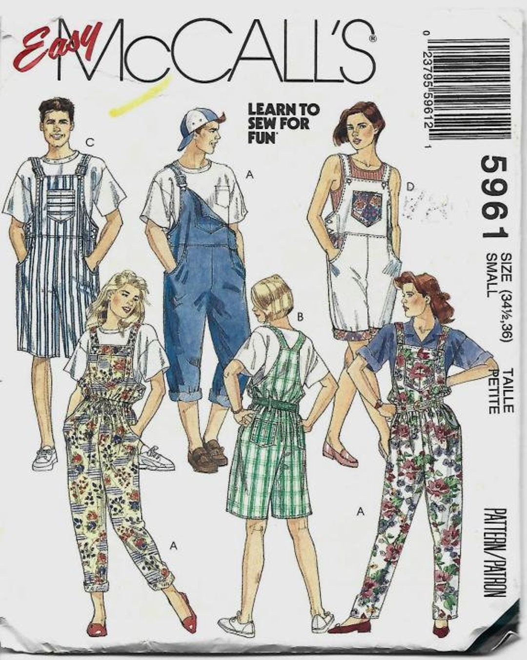 1990s Overalls In Two Lengths Misses Mens Teen Easy To Sew Etsy